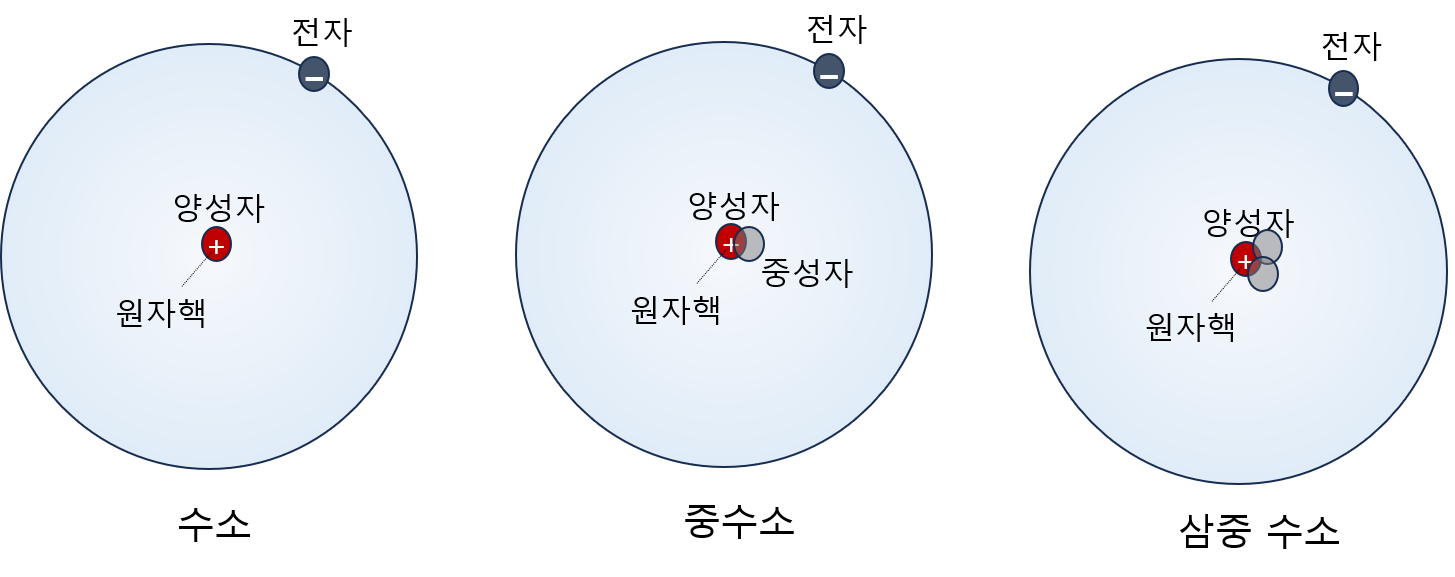 -전자: 원자핵 주위를 움직이며, (-)전하를 띰. (원자핵 주위의 일정한 궤도를 돈다.)